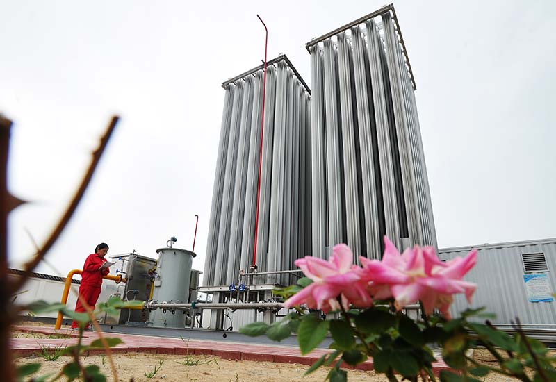 工人在河北省任丘市鄚州鎮(zhèn)大林河天然氣撬裝站內(nèi)巡檢(7月10日攝)。