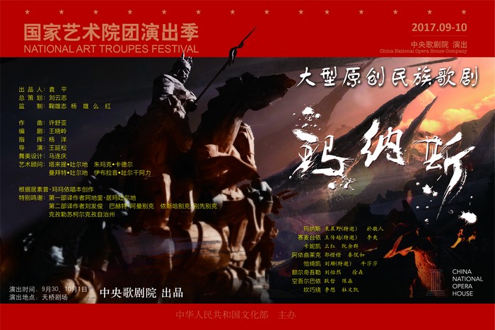 《瑪納斯》是柯爾克孜族的英雄史詩(shī),是中國(guó)三大英雄史詩(shī)之一,更是世界非物質(zhì)文化遺產(chǎn),在世界范圍內(nèi)廣為流傳,尤其是“一帶一路”沿線的中亞地區(qū),目前已有俄文、哈薩克文、德文、英文、法文、土耳其文、日文等多種譯文,是人類共有的寶貴財(cái)富,被世界人民廣泛喜愛和接納。此次,中央歌劇院大型民族原創(chuàng)歌劇《瑪納斯》作為文化部民族歌劇扶持工程重點(diǎn)劇目,經(jīng)過(guò)一年多的醞釀和打磨,將在19大召開前夕搬上舞臺(tái),以打造民族歌劇精品和標(biāo)桿的情懷獻(xiàn)禮19大的勝利召開。