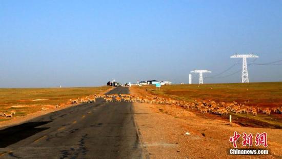 日前,中新社記者沿著可可西里東部的青藏公路行走,隨處可見藏羚羊、藏野驢、藏原羚等野生動物在公路沿線覓食、嬉戲。