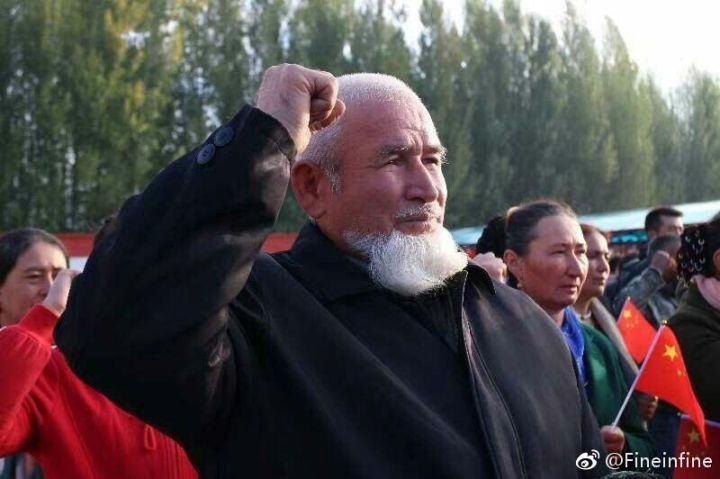 #我和祖國合張影# 我在新疆,烏圖布拉格村,中國公民升國旗和宣誓。