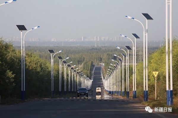 ▲2015年8月13日,焉耆回族自治縣十萬畝葡萄基地一號公路。該縣投入70萬元,在主公路約3公里路段兩側(cè)安裝了270盞太陽能路燈。董基春攝