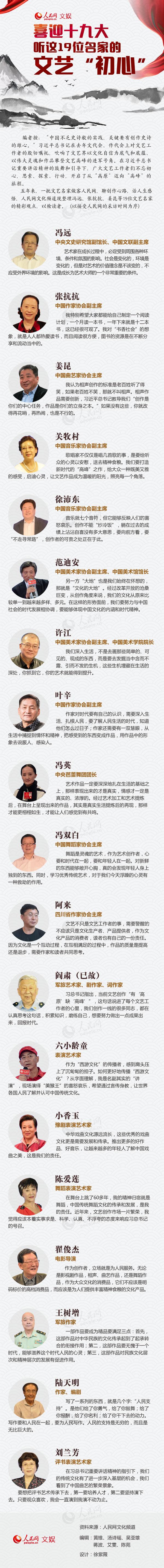 圖解:喜迎十九大,聽這19位名家的文藝“初心”