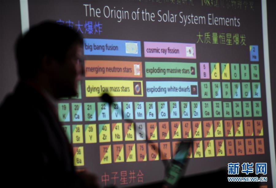 10月16日,在位于南京市的中科院紫金山天文臺(tái)舉行的新聞發(fā)布會(huì)現(xiàn)場(chǎng),中科院南極天文中心主任王力帆介紹相關(guān)研究情況。中科院南極天文中心16日22時(shí)通報(bào),南極巡天望遠(yuǎn)鏡AST3-2于今年8月追蹤到一次重要引力波事件GW170817的光學(xué)對(duì)應(yīng)信號(hào)。