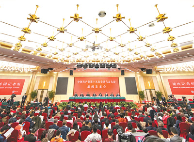 10月26日,中國(guó)共產(chǎn)黨第十九次全國(guó)代表大會(huì)舉行專(zhuān)題新聞發(fā)布會(huì),中外記者積極采訪報(bào)道。本報(bào)記者 史家民攝