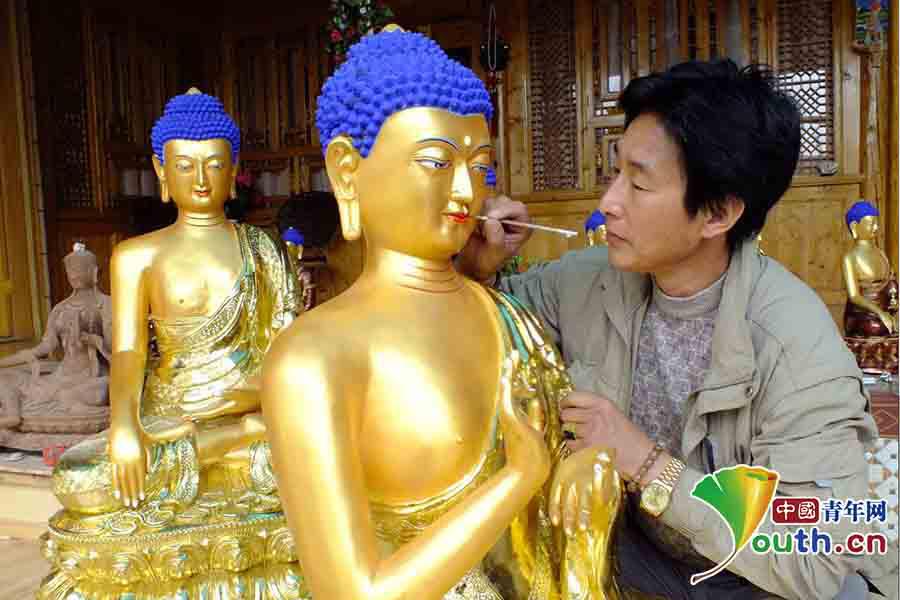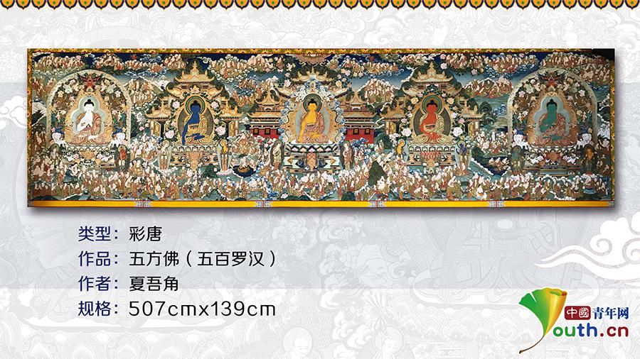 “我主要從事熱貢藝術中唐卡和雕塑的傳承!睔v時七年完成的長5.07米、寬1.39米的唐卡作品《五方佛》是夏吾角的代表作之一。