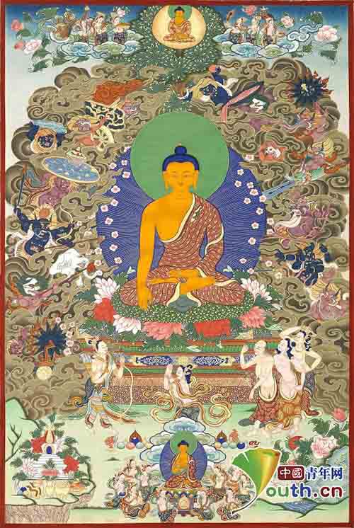 “人物的長相、衣服、色彩等在度量金的標準下要求特別精細,山、水等自然景物也有各自的分割比例!毕奈峤墙榻B說,《佛造像度量經》完整地規(guī)定了所有佛、菩薩、密修本尊等身體結構的比例,創(chuàng)作時要嚴格按照它所要求的標準進行,不得有絲毫差錯。