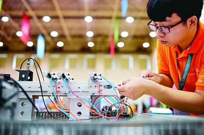 第十屆全國職業(yè)院校技能大賽選手在高職組自動化生產(chǎn)線安裝與調(diào)試比賽中。新華社發(fā)