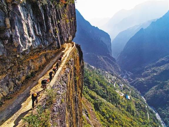 質(zhì)樸的村民還要在絕壁上鑿出一條幸福路