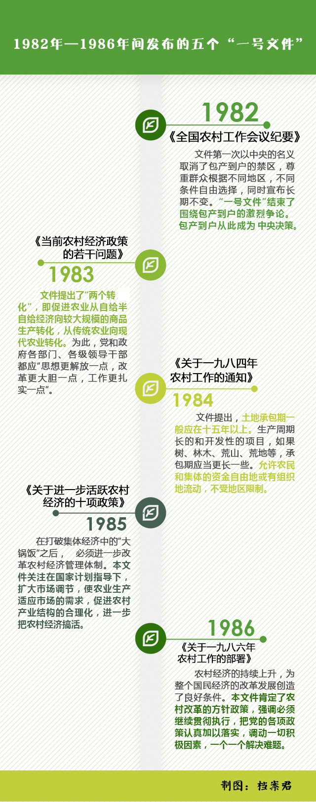 本文檔案資料參考自《人民日?qǐng)?bào)》《中共中央國(guó)務(wù)院關(guān)于“三農(nóng)”工作的一號(hào)文件匯編(1982—2014)》《中國(guó)改革信息庫(kù)》、中國(guó)農(nóng)業(yè)博物館及人民網(wǎng)、新華網(wǎng)、鄧小平紀(jì)念網(wǎng)