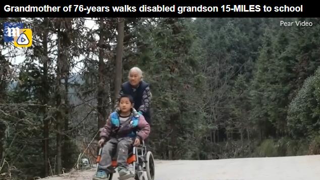 國際在線專稿:英國《每日郵報》1月22日發(fā)表文章,關注中國廣西76歲老太史玉英的感人故事。老人每天都會步行24公里的路,用一把破舊的輪椅推著患腦癱的孫子上學。報道稱,她“4年如一日,風雨無阻,意志堅強。”
