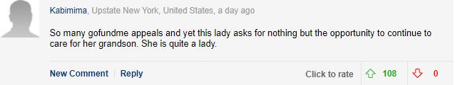 美國紐約的網(wǎng)友Kabimima:“眾籌平臺GoFundMe上有各種訴求,而這位女士卻沒有要求任何東西,只是想要能夠繼續(xù)送她的孫子上學。她真是了不起!