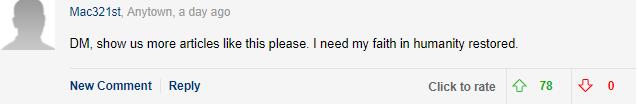 網(wǎng)友Mac321st:“請多寫些這樣的報道。他們的故事讓我重拾對人性的信心!