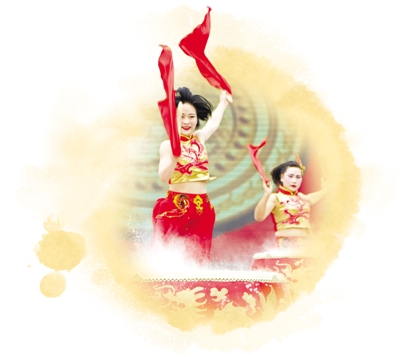 1月20日,浙江麗水,全國鄉(xiāng)村春晚上,女子《鼓舞幸福來》在上演。章勇濤攝