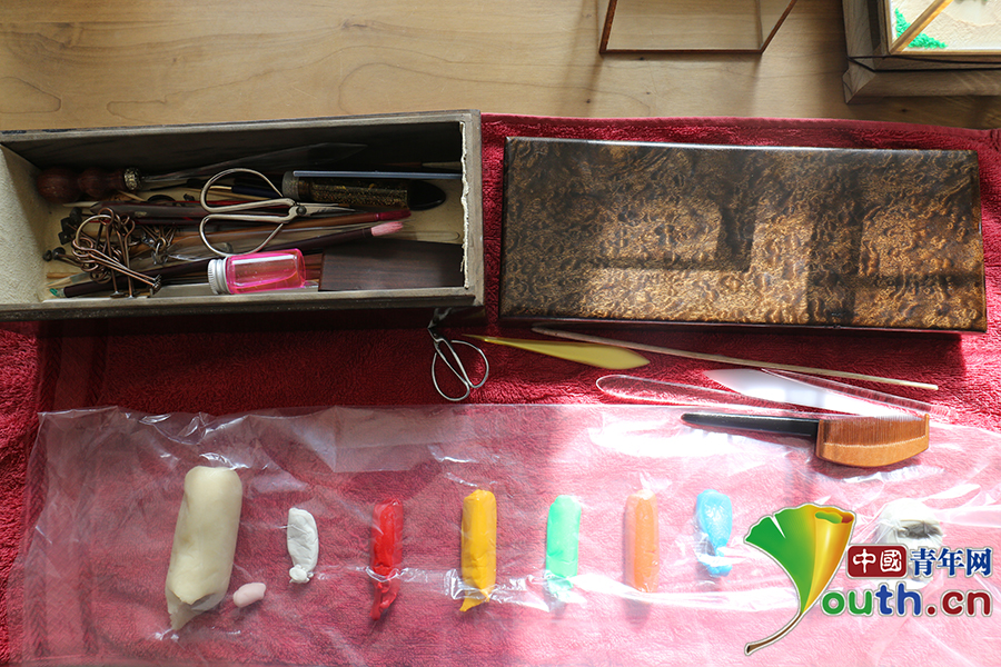 制作面人所需的各種工具。中國青年網(wǎng)記者 張群攝