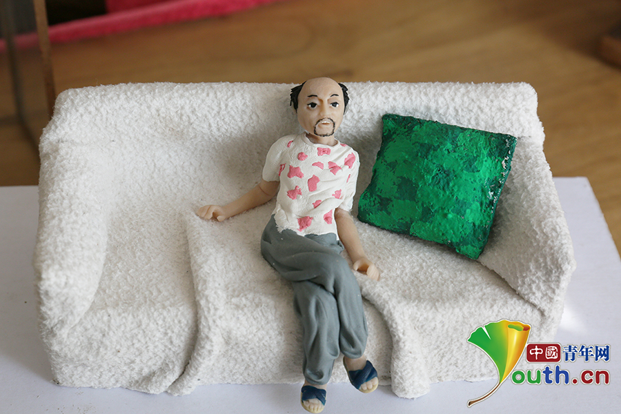 郎佳子彧面人作品《葛優(yōu)癱》。中國青年網(wǎng)記者 張群攝
