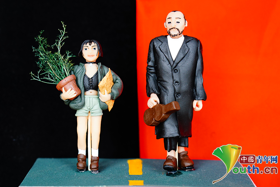 面人作品《這個殺手不太冷》是郎佳子彧最滿意的作品之一。本人供圖
