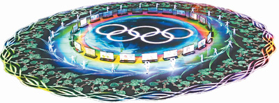 接著,舞臺地面巨型屏幕快節(jié)奏地變換著各類圖案,時而色彩斑斕、時而燦若星河。“冰屏”變換著隊形,錯落有致,而“熊貓隊長”領(lǐng)著輪滑隊員做出滑雪或者滑冰的姿勢,敏捷地在“冰屏”間穿行,追隨著他們輪滑軌跡的線條不時變換著顏色,并組成不同的圖案,演繹出冰球、冰壺等冬奧項目和“中國結(jié)”“長城”等極具中國文化特色的符號。與此同時,“冰屏”陣列如絲帶般飄動,它們都同時呈現(xiàn)鳥巢、國家大劇院等北京文化地標(biāo)。