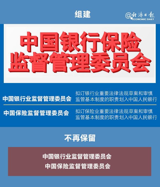 根據(jù)方案,將組建中國(guó)銀行保險(xiǎn)監(jiān)督管理委員會(huì),不再保留銀監(jiān)會(huì)、保監(jiān)會(huì)。