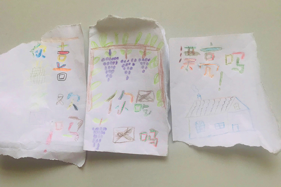 今年年初,尹晶晶所在的工作隊一年派駐期滿。臨別前,孩子們用蠟筆寫出尹晶晶教會他們的漢字,送給老師。
