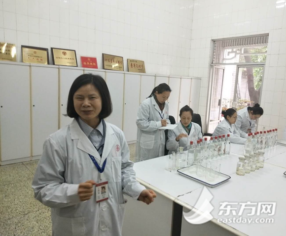 在范國(guó)瓊的工作間,擺滿了不同編號(hào)的實(shí)驗(yàn)器材。范國(guó)瓊告訴東方網(wǎng)記者,基本上每天都要品嘗兩百杯以上,首先是把酒杯放到鼻子處聞酒,這可以判別酒質(zhì)量的70%,然后再品嘗,可以判別剩下部分!安贿^(guò)每天由于不同的外界因素,個(gè)人判別能力會(huì)有起伏,這就需要團(tuán)隊(duì)配合,有時(shí)候3-5人共同嘗評(píng),最終形成一致意見。”