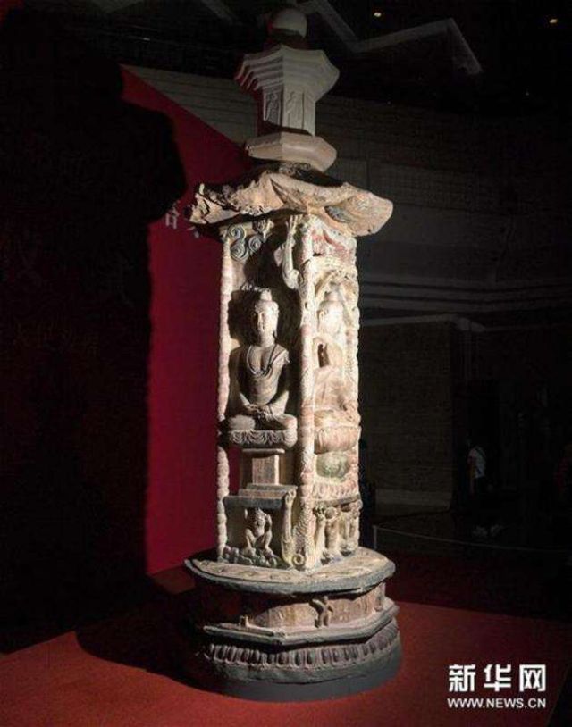 2017年4月,被盜流失19載的唐代鄧峪石塔塔身獲臺(tái)灣中臺(tái)禪寺捐贈(zèng)回歸故里山西。鄧峪石塔位于山西省榆社縣鄧峪村,是一座唐代石雕彩繪四面佛造像塔。