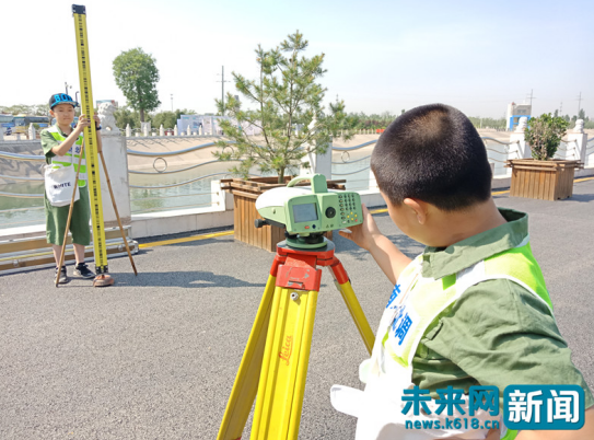 潘禹辰和其他小朋友在體驗測繪工作 未來網(wǎng)記者 劉文靜 攝
