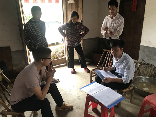 至今鐘明還記得剛到鄉(xiāng)扶貧辦時(shí)參與的第一項(xiàng)工作就是全鄉(xiāng)貧困戶建檔立卡。全鄉(xiāng)的貧困戶遍布7個(gè)行政村,共700多戶2000多人,鄉(xiāng)扶貧辦不僅要將全鄉(xiāng)各村上報(bào)的貧困戶的資料建檔,還要認(rèn)真核對(duì),及時(shí)把所有信息錄入全國(guó)扶貧信息系統(tǒng)。在時(shí)間緊、任務(wù)重、人手不足的情況下,鐘明發(fā)揚(yáng)部隊(duì)優(yōu)良作風(fēng),不分晝夜,連續(xù)作戰(zhàn),放棄周末休息時(shí)間,加班加點(diǎn)工作。經(jīng)過(guò)一個(gè)月的努力,終于把全鄉(xiāng)貧困戶信息準(zhǔn)確錄入扶貧系統(tǒng)。