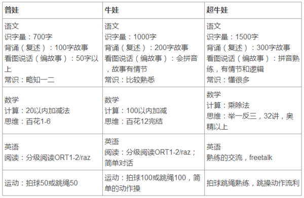 在許多存在“小學(xué)化”傾向的幼兒園和社會培訓(xùn)機構(gòu)內(nèi),“幼小銜接”被等同于知識的銜接,要求孩子提前學(xué)習(xí)漢語拼音、加減法和英語單詞等等。網(wǎng)絡(luò)上甚至流傳著一份“幼升小普娃牛娃配置表”,將處于“幼升小”階段的孩子依據(jù)掌握的語文、數(shù)學(xué)等方面的知識多少劃分為“普娃”、“牛娃”和“[超牛娃]超牛娃”。這樣的認知無疑是極為片面的。過早進行知識性的學(xué)習(xí),強調(diào)知識輸入,短期內(nèi)可能讓孩子獲得了入學(xué)的優(yōu)勢。但如果把眼光放長,則是撿了芝麻丟了西瓜。