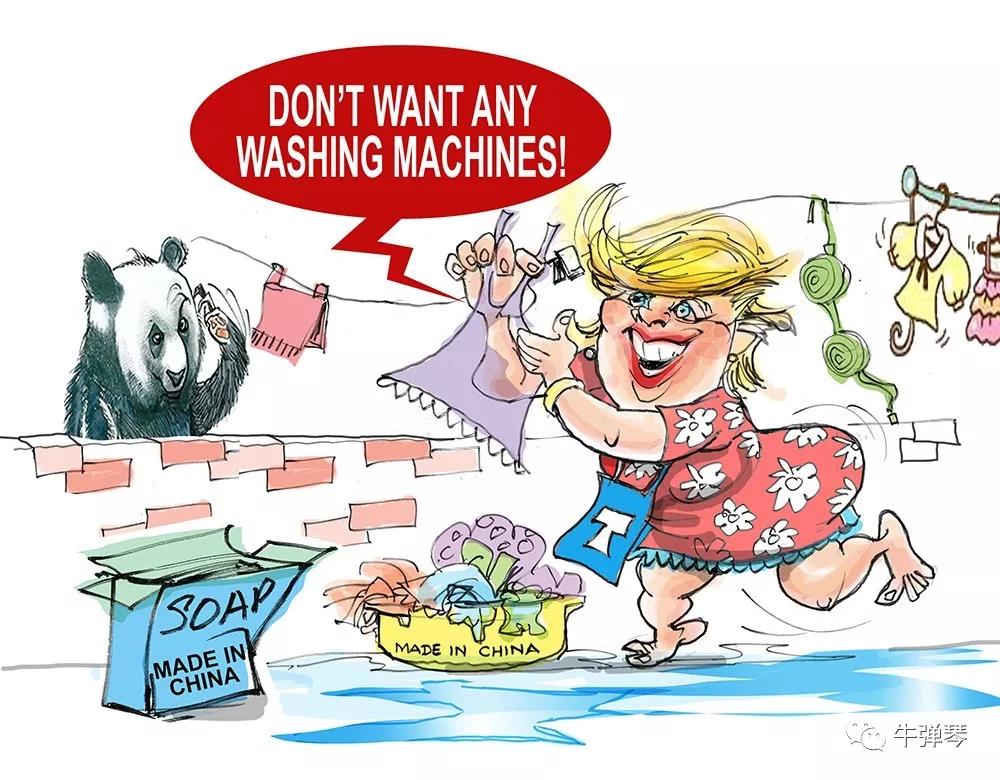 當(dāng)然,對(duì)美國(guó)來(lái)說(shuō),現(xiàn)在估計(jì)也騎虎難下。正如美國(guó)有幅漫畫所嘲諷的:如果都禁止中國(guó)洗衣機(jī)進(jìn)口了,那美國(guó)的大媽們,只能你們辛苦自己動(dòng)手了;哦,美國(guó)男人們,你們也都別傻站著啊……