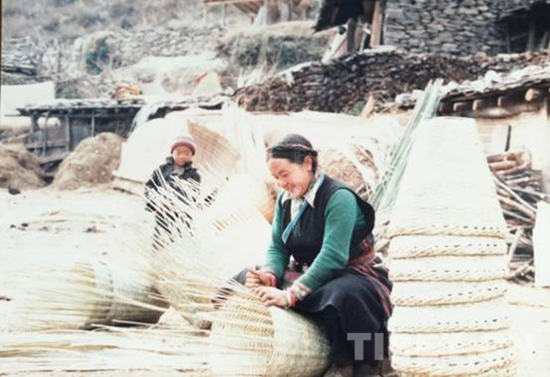 圖為吉隆群眾在編織竹筐(攝于1985年)