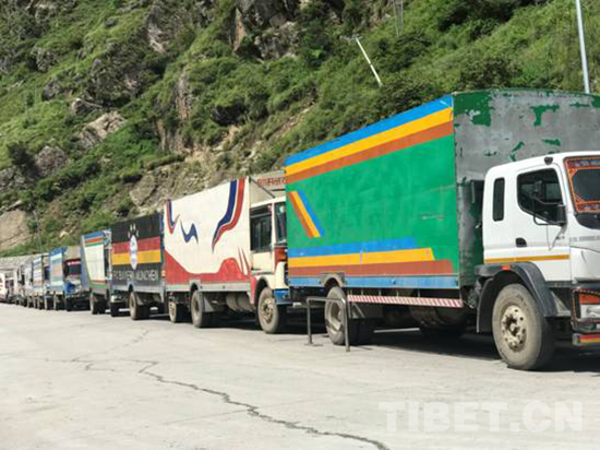 圖為吉隆海關(guān)進(jìn)出口的貿(mào)易車隊(攝于2018年8月)