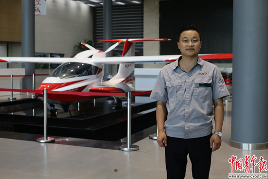 上海浦東臨港科技城,某航空公司副總王仕國(guó)在完全具有自主知識(shí)產(chǎn)權(quán)的國(guó)產(chǎn)水陸兩棲小飛機(jī)前。