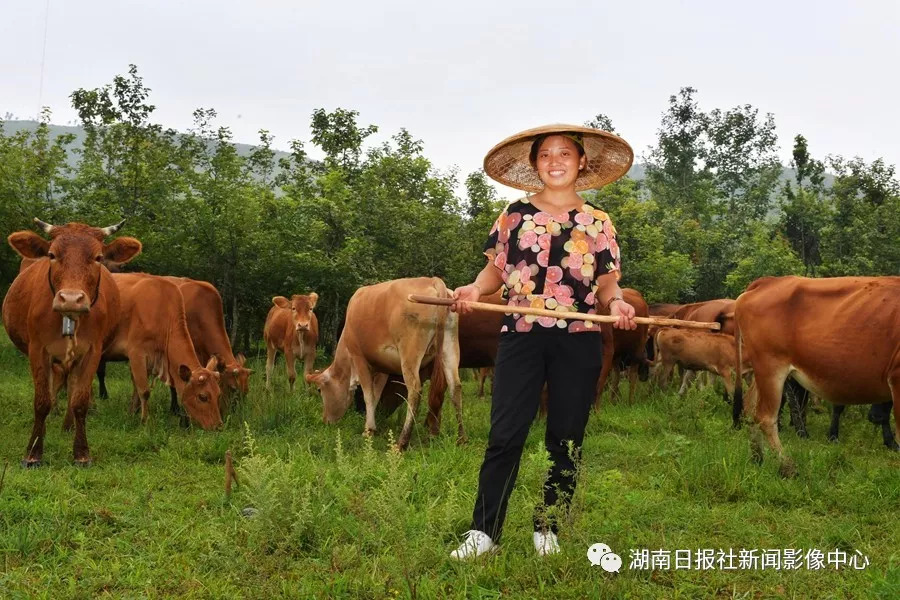 向金梅(網(wǎng)名“牛魔王妃子”)在山上放牛,她畢業(yè)于懷化技術(shù)學(xué)院養(yǎng)殖技術(shù)專業(yè),2016年學(xué)習(xí)電商和網(wǎng)絡(luò)銷售技術(shù)。目前養(yǎng)殖湘西黃牛68頭,養(yǎng)雞5000多羽,年收入20萬(wàn)元。下一步目標(biāo)是擴(kuò)大養(yǎng)殖規(guī)模,更好的學(xué)習(xí)養(yǎng)殖技術(shù)和網(wǎng)絡(luò)銷售技術(shù)。