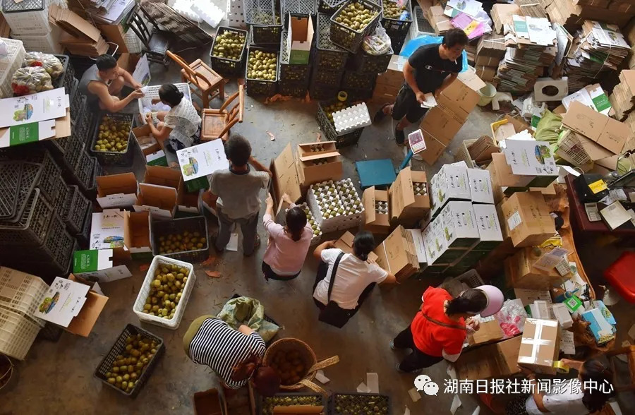 8月25日,永順縣五連洞獼猴桃種植專業(yè)合作社,村民在打包獼猴桃以便網(wǎng)絡(luò)銷售。電商平臺(tái)暢通了農(nóng)產(chǎn)品的銷售渠道,帶動(dòng)了該村種養(yǎng)業(yè)的發(fā)展。