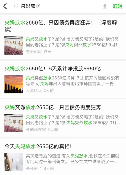 中國(guó)經(jīng)濟(jì)網(wǎng)北京9月21日訊 央行17日在公開市場(chǎng)開展了2650億元1年期MLF(中期借貸便利)操作,由于無央行流動(dòng)性工具到期,所以此次MLF資金全部實(shí)現(xiàn)凈投放。在央行宣布本次MLF操作后,一波自媒體做了極為吸睛的解讀:“央媽放水2650億元”。