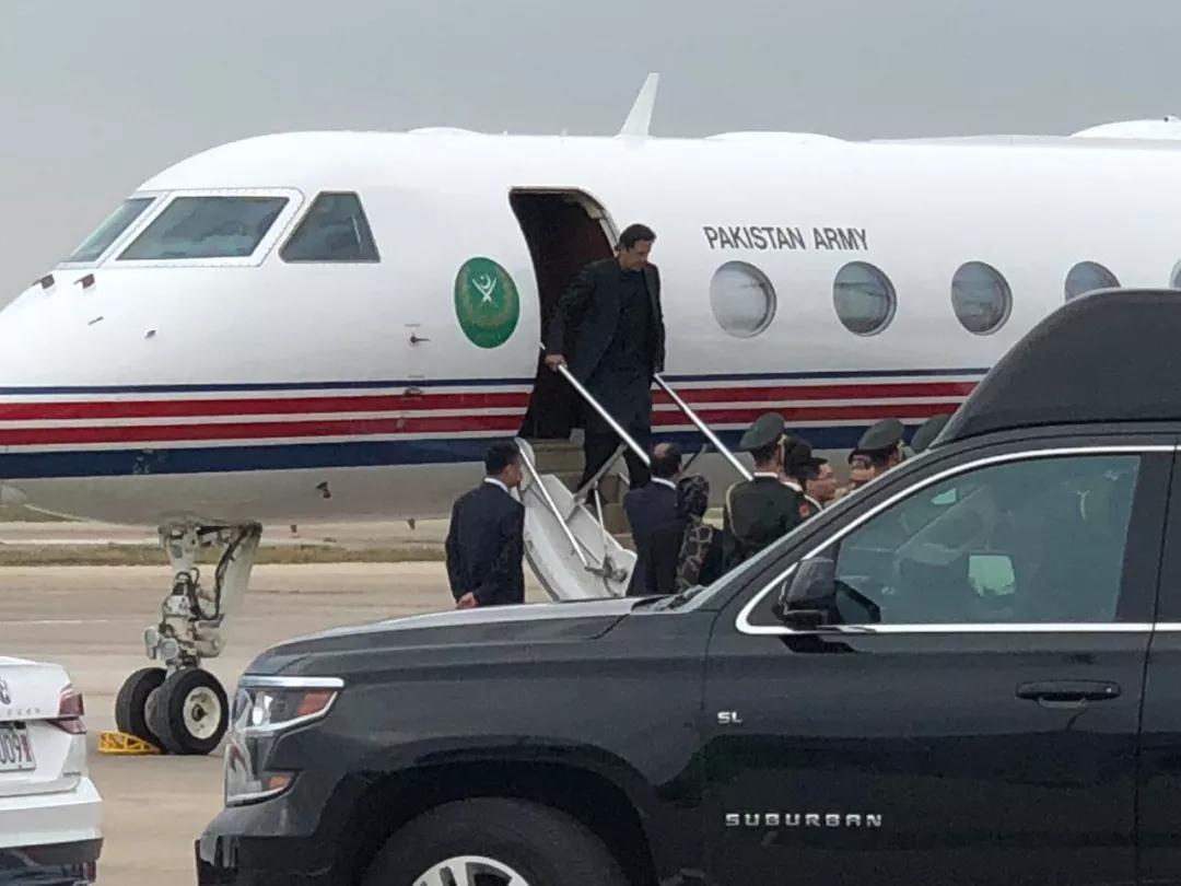 △11月4日下午,伊姆蘭 汗乘專機抵達(dá)上海。(央視記者汪曙光拍攝)
