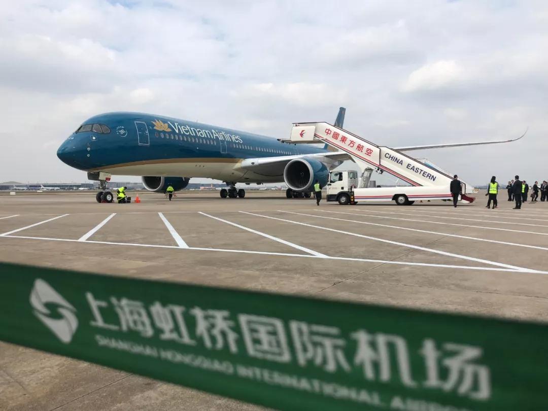 △這是越南總理阮春福乘坐的專機抵達(dá)上海虹橋機場(央視記者汪曙光拍攝)