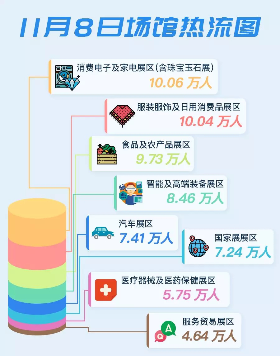 未來(lái)網(wǎng)記者從中國(guó)國(guó)際進(jìn)口博覽會(huì)官網(wǎng)獲悉,11月8日,首屆中國(guó)國(guó)際進(jìn)口博覽會(huì)人氣高漲,各展區(qū)入場(chǎng)人數(shù)約63.5萬(wàn)人次 。