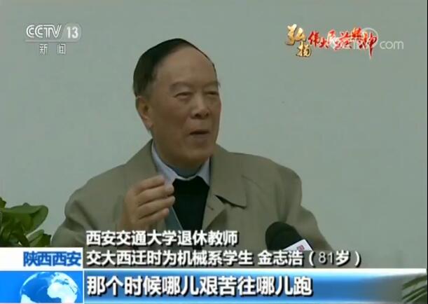 西安交通大學(xué)退休教師、交大西遷時(shí)為機(jī)械系學(xué)生金志浩:唱著《再見(jiàn)媽媽》就一路就奔到西安來(lái)了。那個(gè)時(shí)候哪兒艱苦往哪兒跑,黨的需要就是我的志愿,那是沒(méi)話說(shuō)的,也不在乎艱苦。