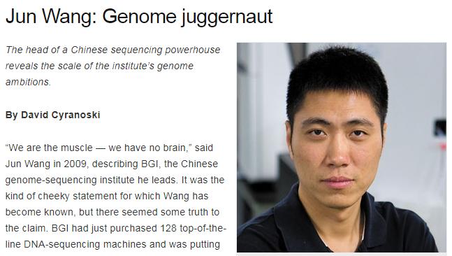 2012年,《自然》雜志報(bào)道王俊的特稿截圖。