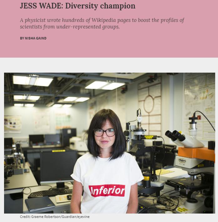 物理學(xué)家杰斯 維德為提高女性和有色人種在科學(xué)界的地位付出了巨大努力,包括為女性科學(xué)家創(chuàng)建數(shù)百條維基百科詞條。