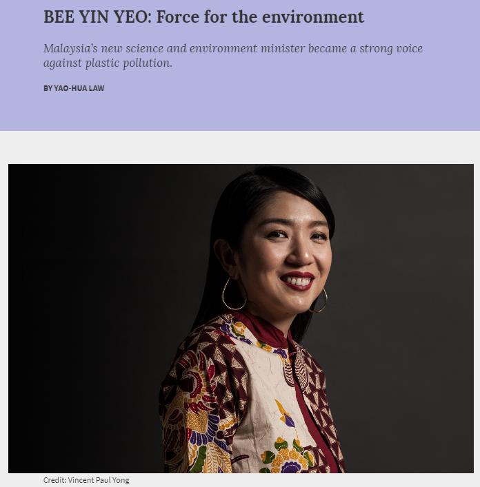 馬來西亞能源、科學(xué)、技術(shù)、環(huán)境及氣候變化部長(zhǎng)楊美盈帶頭倡導(dǎo)了減少一次性塑料使用的環(huán)保行動(dòng)。