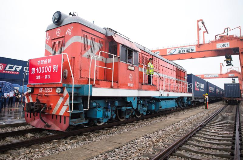 2018年8月26日,隨著X8044次中歐班列(漢堡—武漢)到達(dá)武漢吳家山鐵路集裝箱中心站,中歐班列累計(jì)開行數(shù)量達(dá)到10000列。 來源:新華社