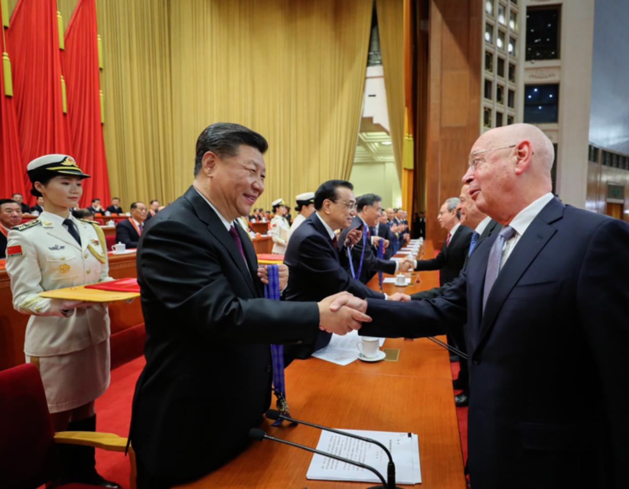 12月18日,慶祝改革開放40周年大會(huì)在北京人民大會(huì)堂隆重舉行。習(xí)近平在大會(huì)上發(fā)表重要講話。這是習(xí)近平等為獲得中國改革友誼獎(jiǎng)?wù)氯藛T代表頒獎(jiǎng)。來源:新華社