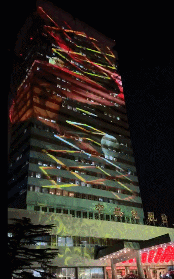 今年中央廣播電視總臺大樓外墻燈光秀采用了立體3D效果,從多方面展示奮進新時代,幸福中國年。