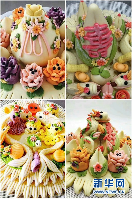 一套面塑為宴席錦上添花。(新華網(wǎng) 曹楨攝)