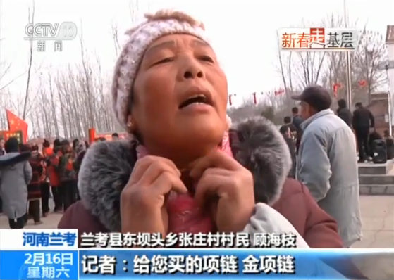 蘭考縣東壩頭鄉(xiāng)張莊村村民 顧海枝:大的買項鏈,二的買耳墜兒,大兒媳婦、二兒媳婦、俺那兩個兒子都可孝順。