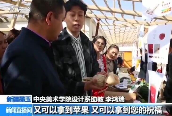 中央美術(shù)學(xué)院設(shè)計系助教 李鴻瑞:桑皮紙是墨玉縣的非物質(zhì)文化遺產(chǎn),買到的人打開這個蘋果的時候,又可以拿到蘋果,又可以拿到您的祝福。
