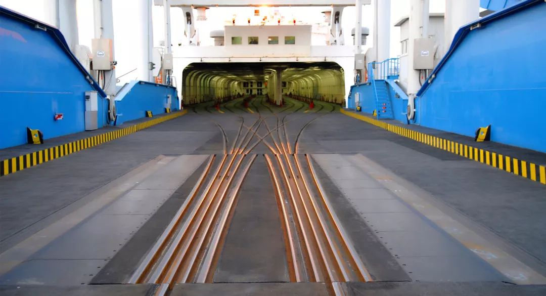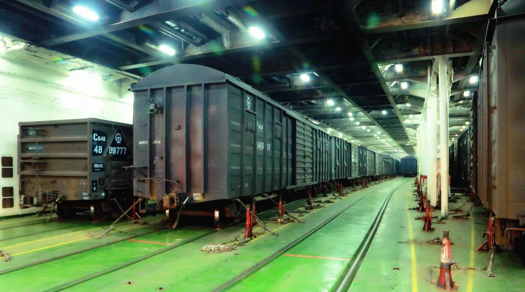 可將火車停放在船艙內(nèi)的任何一組鋼軌上