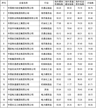 中央企業(yè)海外形象傳播指數(shù)排行榜: